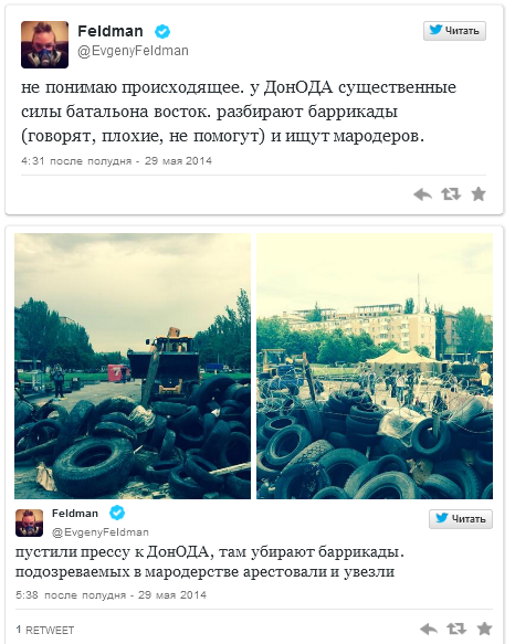 Напомним, 29 мая около 14.00 террористы так называемого батальона «Восток» окружили здание Донецкой облгосадминистрации и арестовали некоторых представителей самопровозглашенной «Донецкой народной республики», которых обвинили в мародерстве и предательстве.