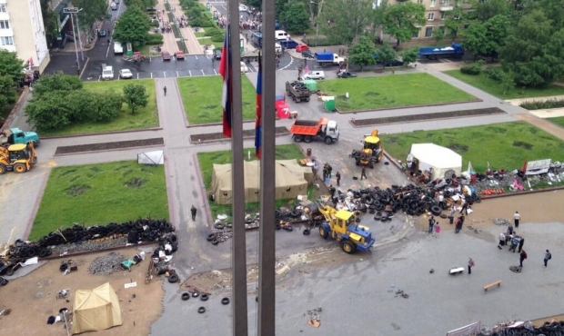 Вокруг Донецкой ОГА сепаратисты убирают баррикады (ФОТО)