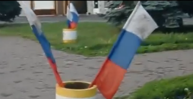 В Горловке российские флаги теперь украшают урны (ВИДЕО)