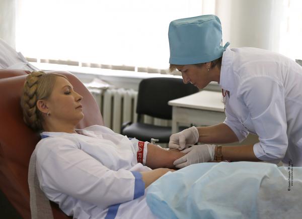 Народные депутаты из фракции «Батькивщина» во главе с лидером партии Юлией Тимошенко сдали кровь для нужд украинской армии и бойцов, участвующих в антитеррористической операции на Востоке Украины.
