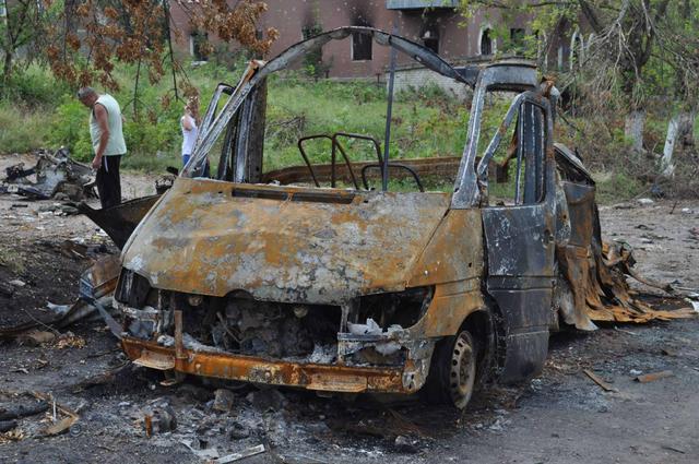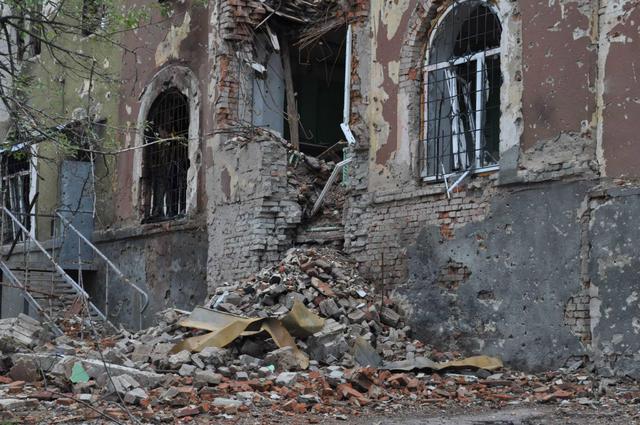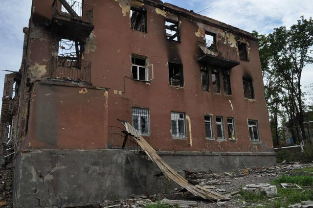 В поселке Семеновка Славянского района Донецкой области, который несколько дней назад освободили от террористов, значительно пострадали многие здания.