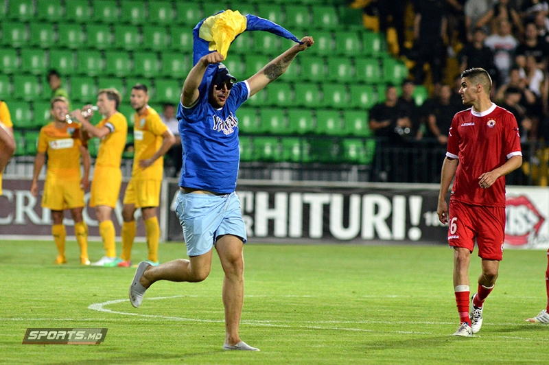 Матч второго квалификационного раунда Лиги Европы между молдавским «Зимбру» и софийским ЦСКА был прерван на некоторое время из-за выбежавшего на поле болельщика, который размахивал национальным флагом Украины, сообщает moldova.sports.md.