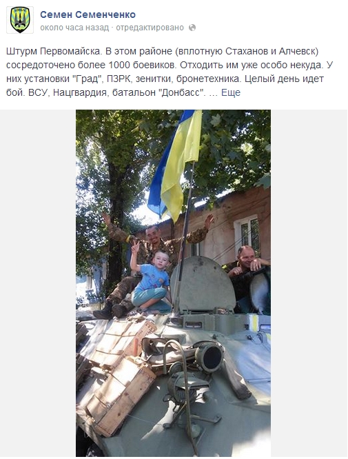Нацгвардия совместно с вооруженными силами Украины и батальоном Донбасс начали штурм Первомайска, Луганской области. Об этом сообщил командир батальона "Донбасс" Семен Семенченко на своей странице в Фейсбуке.