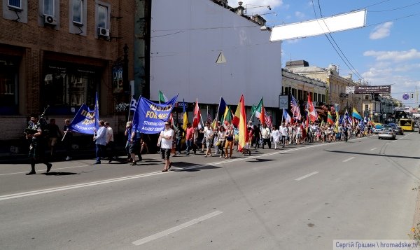 После этого колонна с флагами разных стран мира прошла от Контрактовой до Европейской площади. В акции приняли участие около 250 человек из разных стран. Акцию посетил посол Малайзии в Украине Чуа Беонг Тан.