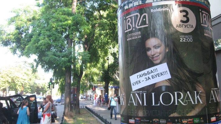 Евромайдановцы, представители Свободы и организации Правый сектор срывают концерт Ани Лорак, который должен был состояться в воскресенье в ночном клубе Ибица в Одессе.