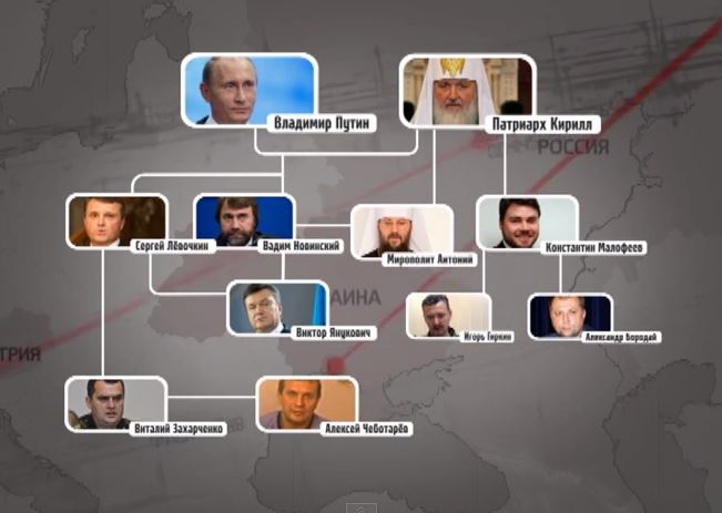 Одними из самых известных церковных меценатов России и Украины являются Константин Малофеев и Вадим Новинский. Константин Малофеев, глубоко верующий человек, российский миллиардер входящий в ближайшее окружение Владимира Путина. Так же тесно он связан с патриархом Кириллом, с которым вместе привозил в Украину дары Волхвов. Сопровождал их в этой поездке будущий глава боевиков "ДНР" Игорь Гиркин, в то время он занимал пост главы СБ Малофеева. Так называемый премьер-министр "ДНР" Александр Бородай так же работал в структуре Малофеева, занимаясь пиар-компаниями.