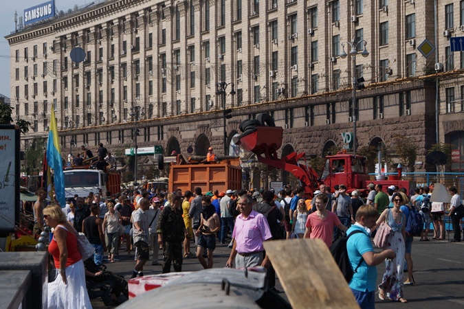 Коммунальщики сносят палатки на Майдане. Народ против