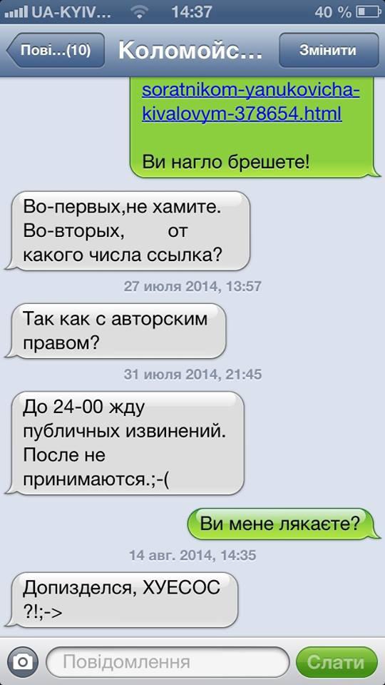 "Только получил от господина Коломойского. Что дальше? Завтра будете стрелять?", - Написал нардеп.