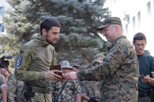 "Именно батальоны Национальной гвардии и Министерства внутренних дел, которые фактически сформированы на добровольной основе, сегодня становятся той базой, на которой мы будем восстанавливать систему безопасности Украины", - отметил Турчинов. Председатель Верховной рады Украины сообщил, что командиры батальонов докладывают о том, что уже есть позитивный опыт работы с местным населением, которое выявляет расположение позиций террористов и помогает их ликвидировать.