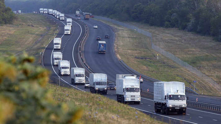 Грузовики проследовали из Луганска в Донецк Ростовской области по объездной дороге.