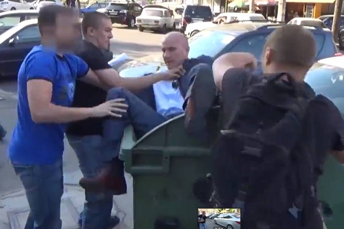 Активисты «Правого сектора» затолкали в мусорный бак одесского чиновника (ВИДЕО)