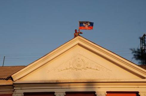 «Мотороловцы заняли город Комсомольское и водрузили над мэрией флаг «ДНР». В кабинете мэра Мотороле понадобился только стационарный телефон (мобильная связь там отсутствует напрочь) и подробная карта города», – говорится в сообщении боевиков