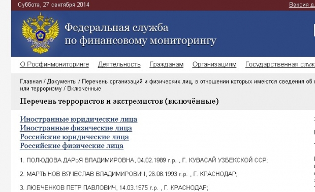 В России трое краснодарцев – Дарья Полюдова, Вячеслав Мартынов и Петр Любченков – попали в Федеральный список экстремистов и террористов.