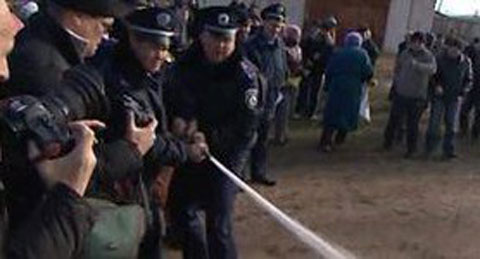 Как сообщает 5 канал, люди выступали против действий одной из агрофирм, которая, по словам митингующих, отбирает у людей землю. В знак протеста возмущенные крестьяне подожгли чучело и автомобильные шины. Тушить возгорания взялись пожарные. Впрочем, по словам журналистов, вместо них к работе стала милиция, которая направила струи в сторону операторов двух центральных украинских телеканалов. А заявление от пострадавших репортеров - о противоправных действиях - правоохранители принимать отказались.