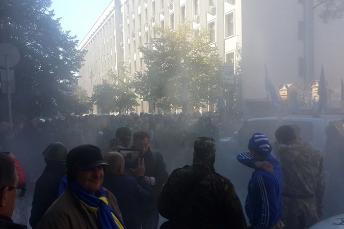 Также протестующие под АП требуют исключить из блока Петра Порошенко экс-коммунистов и регионалов и взять под президентский контроль выполнение закона "О люстрации".