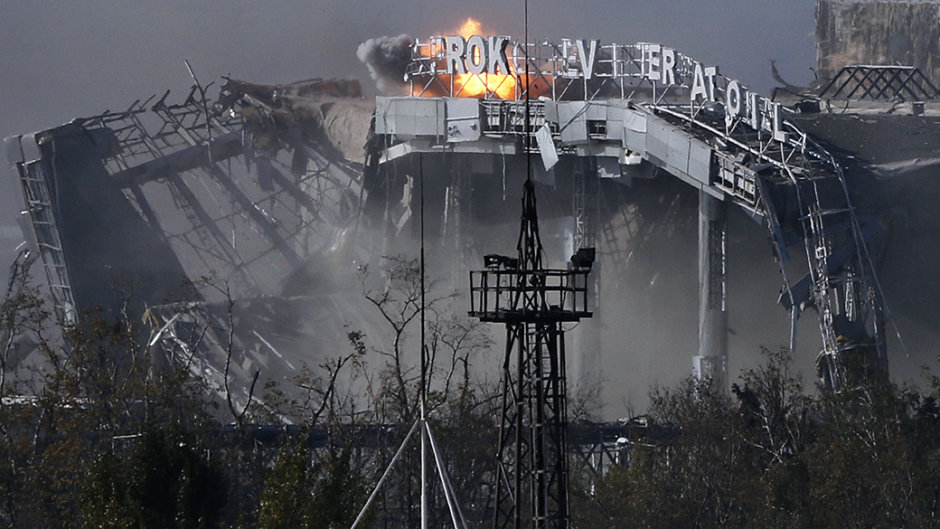 Донецкий аэропорт теперь напоминает Сталинград в годы Второй мировой войны. Здесь действительно, как в Сталинграде, враг притаился буквально за стеной. Бойцы 95-й аэромобильной бригады и отряд "Правого сектора" обороняют остатки старого терминала и два этажа нового. Сепаратисты - на третьем и в подвале. Они уже буквально два дня разбирают завалы, чтобы подняться к двери.