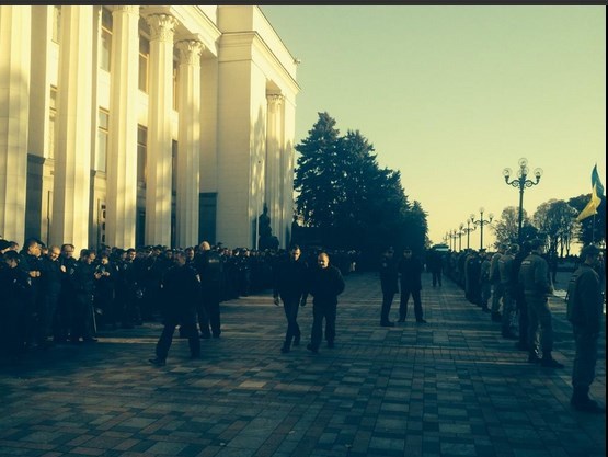 Здание Верховной Рады, где сегодня должно состояться пленарное заседание, усиленно охраняется милиционерами и бойцами добровольческих батальонов.