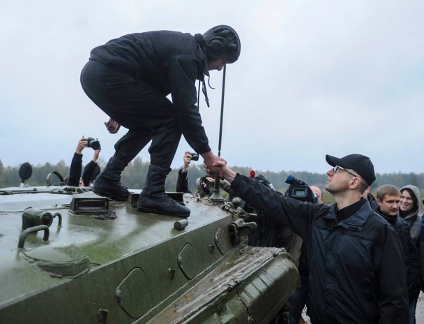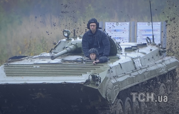 Яценюк не выдержал и сам проехался на боевой машине пехоты. Глава правительства отметил профессионализм механика-водителя БМП и подчеркнул необходимость обновления техники для ВСУ.