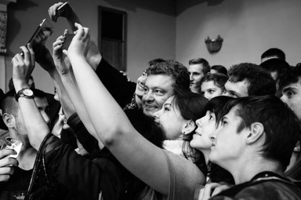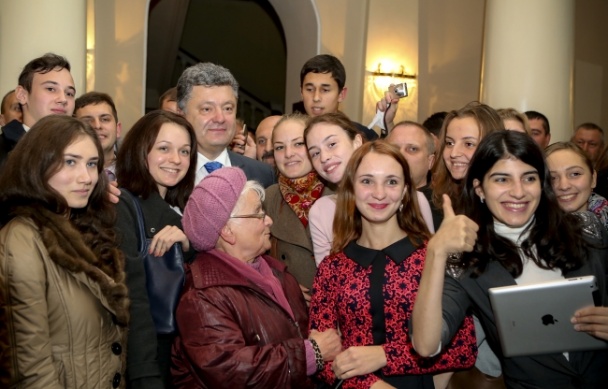 "Украина изменилась. Днепропетровск - спасибо!", - так Порошенко подписал фото, где он делает селфи со студентами.