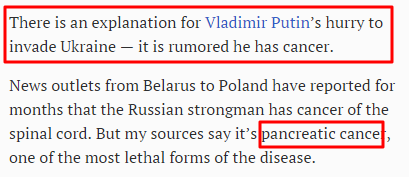 Как отметило издание, российский лидер страдает от недуга уже более трех лет. Именно поэтому президент России спешит с вторжением в Украину. Он хочет оставить в наследство великую Россию, расширив границы страны, как и Сталин, — утверждает автор статьи Ричард Джонсон.