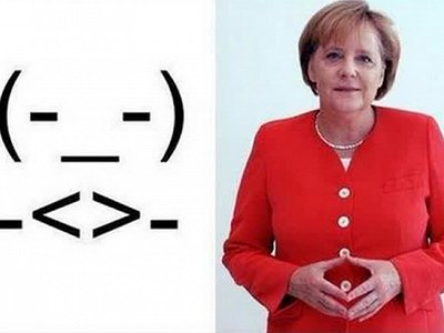 Канцлер германии Ангела Меркель известна теперь в мире не только, как женщина-политик, но и как обладательница своего собственного смайлика. Блогеры изобразили её в виде смайлика, у которого соединены перед собой пальцы рук. Этот жест считает фирменным жестом Ангелы Меркель.