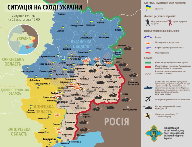 Также во всех секторах ответственности сил АТО продолжается укрепление позиций разветвления их инфраструктуры. Украинские войска продолжают готовиться к выполнению боевых задач в зимний период.
