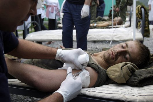 Они сейчас пребывают на операционных столах, некоторые в критическом состоянии в реанимации. Одного бойца отправили в 16-ю больницу, у него ранение грудной клетки. Еще двоих - в военный госпиталь, у них осколочные ранения", - сообщил журналист.