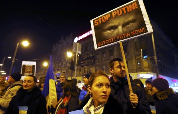 Среди лозунгов, с которыми вышли демонстранты, - "Путин - нет, Европа - да!" Или "Русские, домой!"