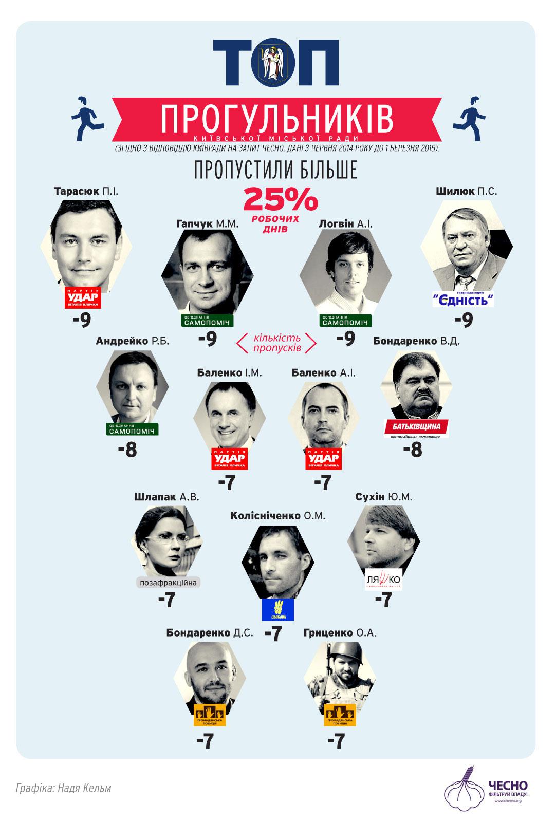 Главные прогульщики в Киевсовете (ИНФОГРАФИКА)
