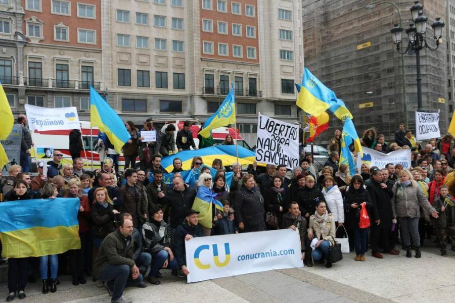 Прибыв на главную площадь Мадрида, а именно на Puerta del Sol (Пуэрта-дель-Соль), участники манифестации спели Гимн Украины, а также зачитали несколько стихов выдающихся украинских поэтов, и продемонстрировали 2 из 6 карет швидкоии помощи, которые приобрели неравнодушные патриоты из всиеии Испании и которые будут отправлены в Украину, в зону АТО.