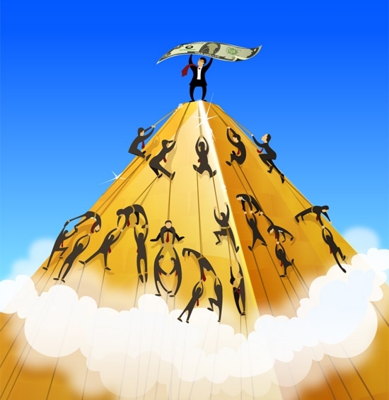 Финансовая пирамида определяется как метод привлечения и использования лицом финансового актива вкладчика, по которому сохранение его реальной стоимости или выплата дохода по нему или его возврат обеспечиваются полностью или частично за счет источников, не связанных с распределением чистых активов, страховых или иных нераскрытых резервов, сформированных указанным лицом в соответствии с законодательством. Деятельность, направленная на создание и ведение финансовых пирамид, в том числе с использованием е-денег, является запрещенной в Украине и приравнивается к мошенничеству с финансовыми ресурсами. При этом, Национальный банк Украины может сузить или расширить содержание термина «финансовая пирамида» в отношении деятельности банков, а Национальная комиссия по ценным бумагам и фондовому рынку может расширить содержание термина «финансовая пирамида» для небанковских финансовых учреждений (кроме профессиональных участников фондового рынка).