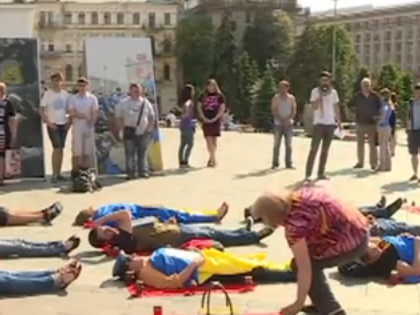 Отмечается, что в мероприятии приняли участие несколько десятков человек: они ненадолго легли на площадь, не выкрикивая никаких лозунгов.