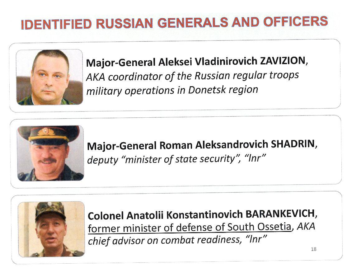 Генерал-майор Олег Цеков находится в Мурманской области и командует 200-й отдельной мотострелковой бригадой, а не 2-й бригадой народной милиции ЛНР.Генерал-майор Роман Шадрин является военным пенсионером с 2012 года. По данным Киева, он был назначен министром госбезопасности ЛНР.