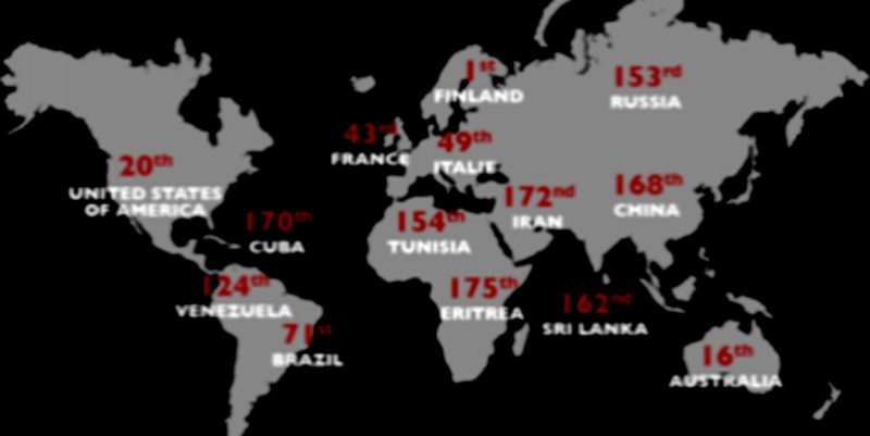 По подсчетам авторов рейтинга, Украина набрала в общей сумме 6,49 баллов, расположившись между Замбией и Руандой, сообщает Цензор.НЕТ со ссылкой на "Тиждень" со ссылкой на ВВС. Исследователи отметили довольно неплохой показатель личных свобод в нашей стране - 7,5 (столько же, например, у Гондураса, а высший балл у Нидерландов - 9,5), однако при этом откровенно неудовлетворительный результат в части свободы - 5,46 балла.