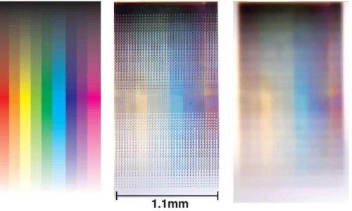 Новые плазмонные пиксели представляют собой микромассивы из алюминиевых наноантенн, каждая из которых выборочно поглощает и отражает лишь свет с определенной длиной волны. Длина каждой наноантенны определяет цвет пикселя, а ширина промежутка между отдельными наноантеннами - насыщенность и яркость создаваемого цвета.