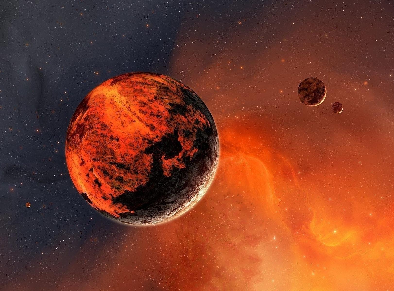 Компьютерное моделирование эволюции Марса также показывает, что на раннем этапе своего развития Марс был окружен десятью небольшими естественными спутниками и одним крупным. Однако приливные силы Марса способствовали тому. что все маленькие луны были притянуты к планете, а в роли спутников остались лишь 2 более крупных компаньона Марса, которые сегодня мы знаем как Деймос и Фобос.