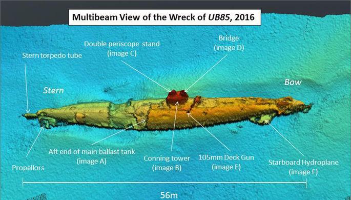 100-метровая лодка была обнаружена при помощи сонаров у берегов Уигтауншира, подводные исследователи пришли к выводу, что это останки немецкой подлодки UB-85, потопленной британскими моряками 30 апреля 1918 года.