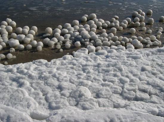 Данное природное явление возникает крайне редко, последний раз образование ледяных шаров было зафиксировано 2 года назад в Финском заливе. На самом деле никакой тайны в происхождении подобных шаров нет. Ученые рассказали, что сперва появляется так называемое ледяное сало, которое подвергается воздействию ветра, волн и климатических проявлений. Впоследствии сформированные сферические льдины выбросило на берег.