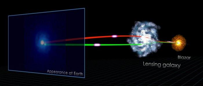 Астрофизики США, зафиксировавшие уникальный сигнал, который следовал из «точки А до точки Б» на протяжении 7 млрд земных лет, присвоили ему наименование QSO B0218+357. В научной статье, опубликованной в журнале Astronomy & Astrophysics, акцентируется, что всплеск гамма-излучения двигался к Земле во вселенной 7 млрд лет, не растеряв по дороге свою энергию. Это первый наиболее удалённый от Солнечной системы устойчивый сигнал, отмечают астрофизики.