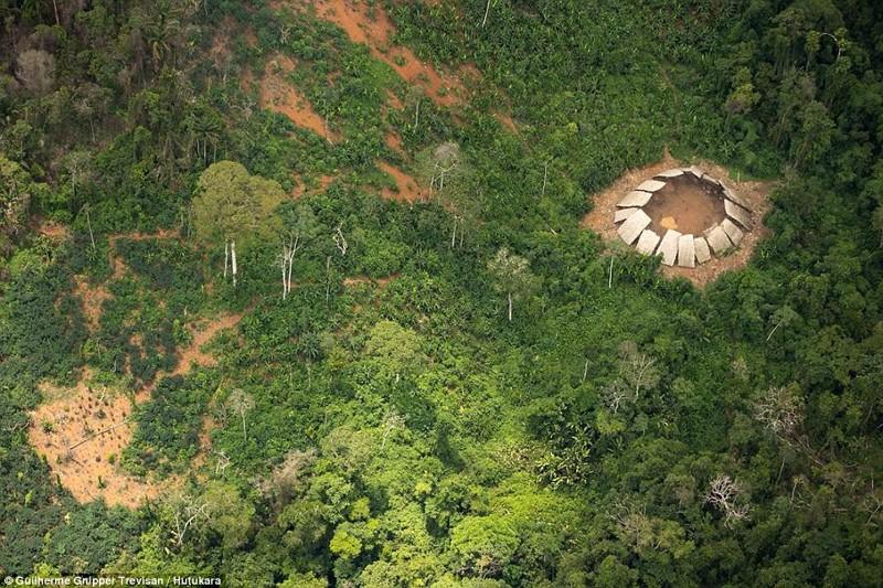Это поселение индейцев яномамо, в котором живут около 100 человек. Круглая конструкция на фотографии, по всей видимости, является их жилищем. Всего в таких общинах на границе Бразилии с Венесуэлой проживает около 35 тысяч яномамо.