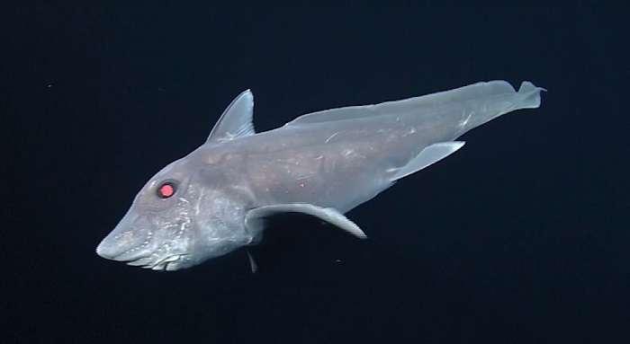 Специалисты проанализировали ролик и установили, что снятая рыба относится к виду Hydrolagus trolli, которых голубой окрас и заостренный нос.