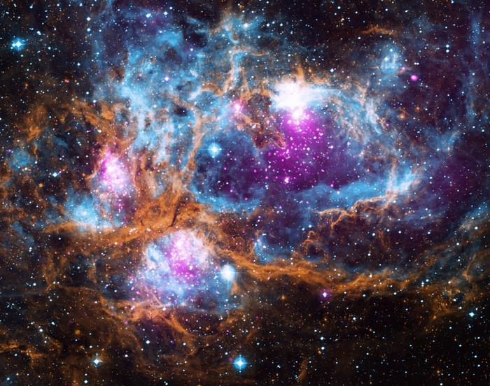 Наблюдения показывают, что в NGC 6357 «проживают» как минимум три группы молодых звезд, многие из которых массивны и горячие. В рентгеновском диапазоне ученые увидели сотни точечных источников – это молодые звезды, многие из которых скрыты пылью и газом туманности.