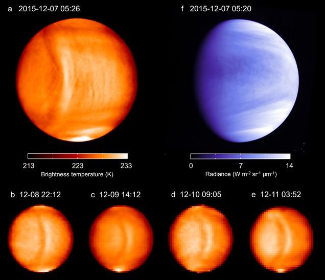 На полученных снимках видно, как в атмосфере Венеры проходит огромная волна протяженностью около десяти тысяч километров. Это волна движется со скоростью 360 километров в час в верхних слоях атмосферы Венеры, однако при этом остается как бы «стоячей» для наблюдателей из космоса.