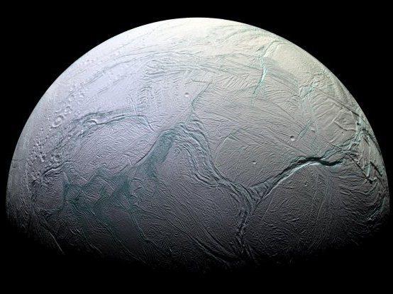 Энцелад диаметром в 504 км. На спутнике под ледяным поверхностным слоем имеется огромный океан, который при контакте со скалистой мантией космического объекта проявляет различные химические реакции. По этой причине ученые считают спутник Сатурна лучшим аналогом жизненных условий в Солнечной системе после Земли.
