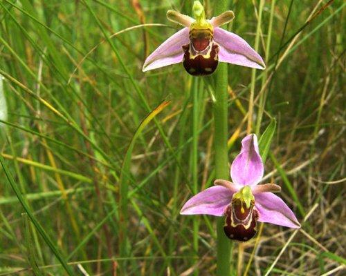 Ophrys Apofera также орхидея. Она очень похожа на пчелу. Постоянно привлекает этих насекомых мужских особей, так как принимает вид самки. Ещё у неё есть специфический запах, на который реагируют пчёлы. Благодаря этому цветок получает пыльцу легко и просто, а самец ничего не имеет.