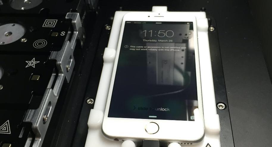 Об этой машине мало что известно. Прежде всего, она позволяет Apple калибровать камеру и дисплей iPhone (две вещи, которые имеют решающее значение в процессе ремонта). Возможно, наиболее примечательным является то, что устройство позволяет Apple подключить новую кнопку Touch ID к старым устройствам.