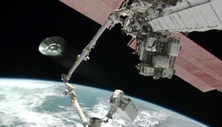 Два НЛО приблизились к МКС, демонстративно расположившись перед объективами камер. Они появились из ниоткуда и через несколько минут также внезапно исчезли. При этом можно заметить, что один из НЛО, схожий с полупрозрачным пончиком, становился все ярче, чего не рискнул сделать второй, оставаясь почти незаметным.