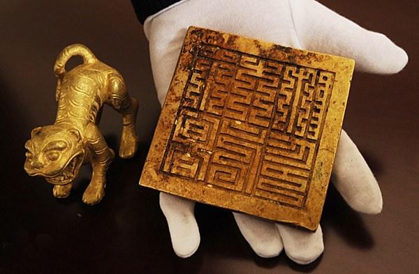 Золотого тигра нашел местный житель, решивший проверить легенду о затонувших сокровищах «Желтого тигра». Артефакт был обнаружен на глубине трех метров. В дальнейшем ныряльщиком были обнаружены монеты, слитки и другие древние изделия, которые он продал подпольному коллекционеру.
