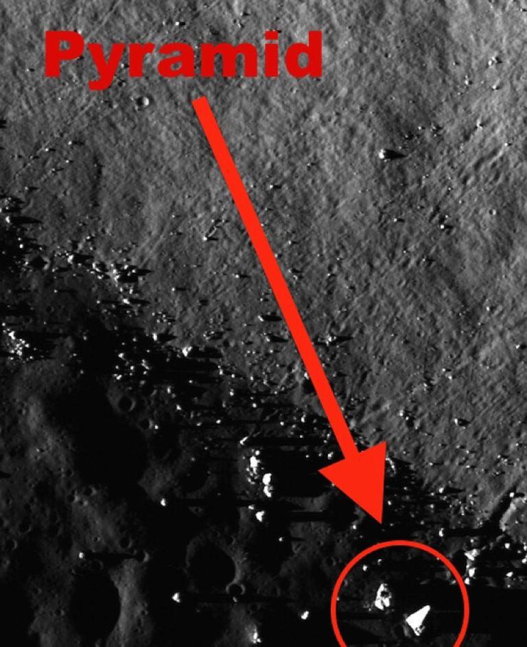 Известный уфолог-любитель Скотт Уоринг сообщил о своей находке. Он рассказал, что на одном из последних снимков полученном орбитальным зондом The Lunar Reconnaissance Orbiter хорошо видна ярко-белая пирамида, которая торчит в одном из лунных кратеров. На фотографии четко видно, что сооружение имеет четыре грани и не покрыто толстым слоем пыли, в отличие от окружающего его ландшафта. Ученые предполагают, что находка свидетельствует о деятельности пришельцев на Луне.