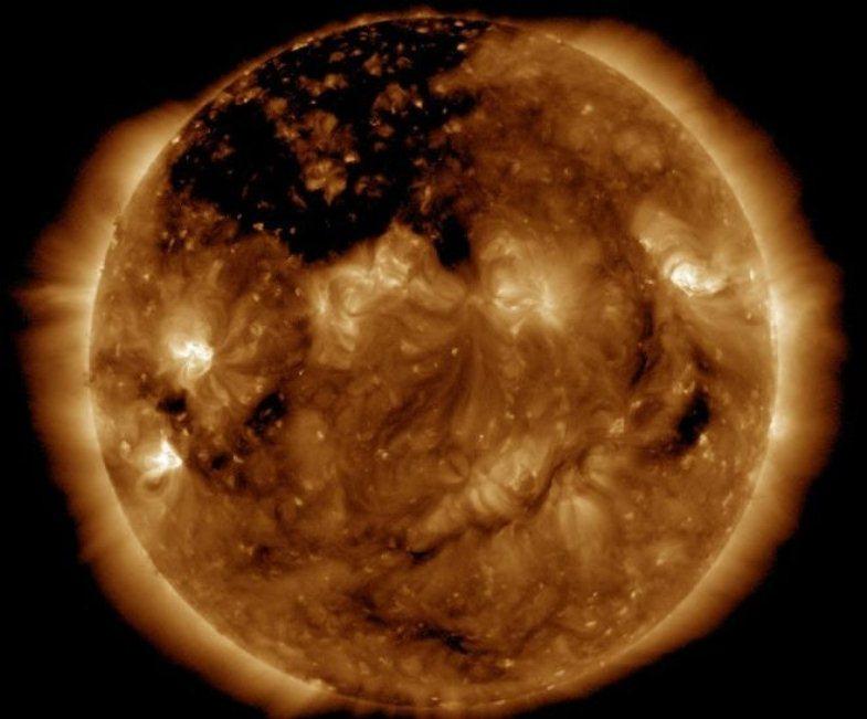 Отмечается, что обычно заряженные частицы больше похожи на продолговатые нити, однако отверстие имеет округлую форму и больше выделяется из-за своего черного «пятна». Также его внесли в событие высокой солнечной активности.